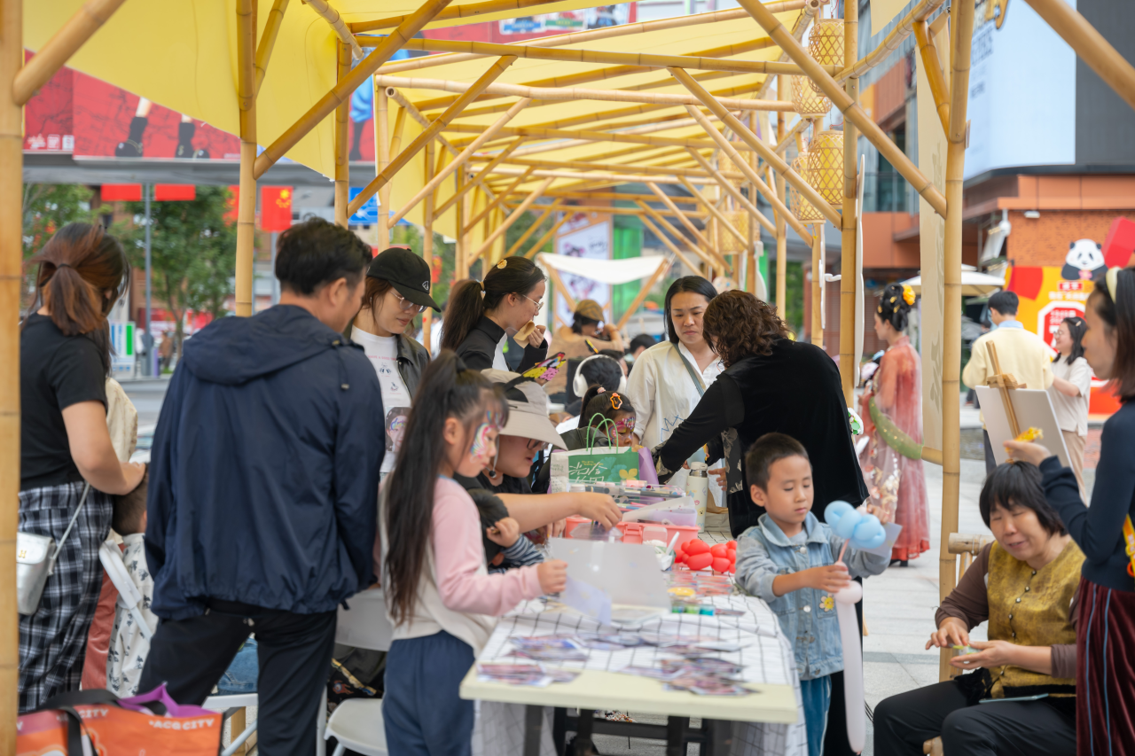 当周年庆遇上中秋国庆,传统韵味与潮流元素在此融合共舞。“匠心之约·非遗雅集”活动现场,民俗匠人展示川剧技艺,变脸、吐火好戏连台,在DJ电音的互动中,打造出新场景、新玩法。