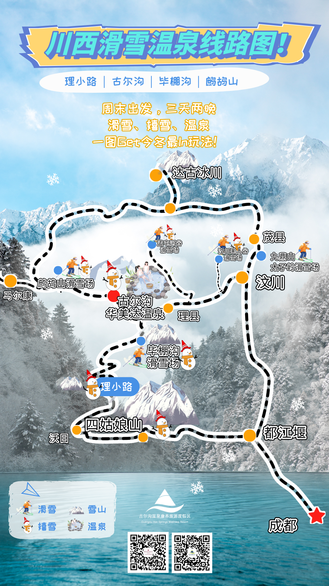 近年来,四川大力发展冬季旅游,冬日冰雪+温泉,是最佳的休闲度假旅游产品。古尔沟温泉作为四川唯一一家获得国家级认证的“优质珍稀温泉”,富含高偏硅酸,泉水可饮、可浴、可疗,具有极佳的疗愈功能。游客朋友们在酒店周边的毕棚沟月亮湾冰雪娱乐场、鹧鸪山滑雪场、孟屯河谷滑雪场体验完滑雪玩雪后,再来古尔沟华美达体验一场暖暖的温泉,就是冬日里最好的旅游体验。