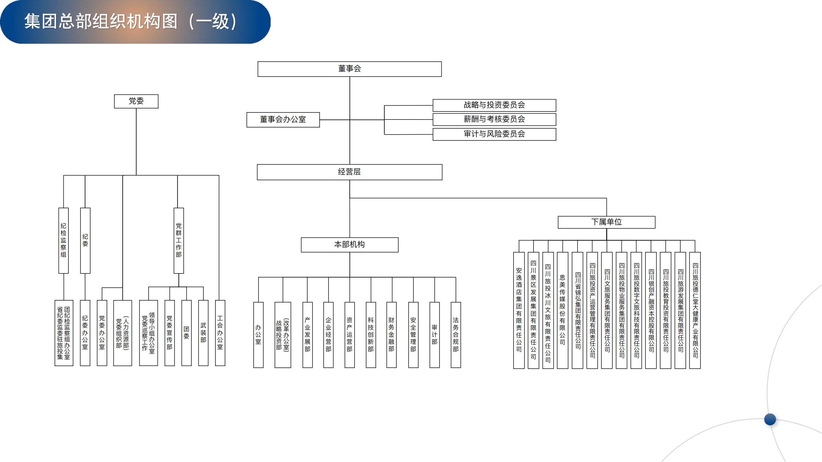 四川省旅游投资集团有限责任公司(以下简称省旅投集团)是省委、省政府批准组建的大型旅游旗舰型企业集团,肩负落实文化强省旅游强省建设战略部署,整合全省文旅资源、推动文旅产业转型升级,带动全省文旅产业发展的重要使命。